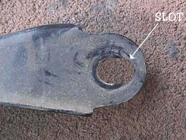 This is the picture of what I mean by "slot" out the holes. This allows the top of the wheel to be pulled out farther in order to compensate for bad negative camber.