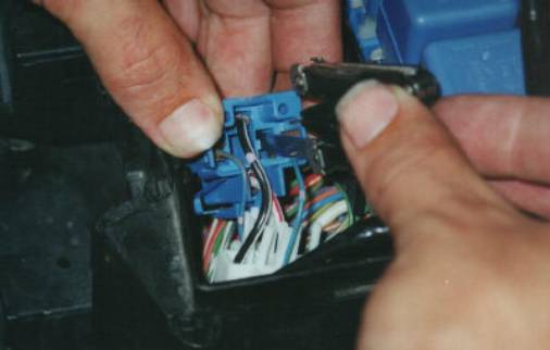 connecter out and remove bracket it pushes out through the bottom, so use a screwdriver.