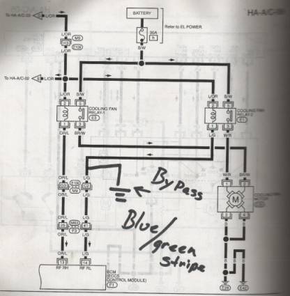 Ever wanted an electric fan in your s-14 to free up a little power and space? I have compiled these pictures in hopes to take a little mystery and worry out of re-wiring your existing electric fan using the stock relay, and it can all be done for fewer than 5 dollars.